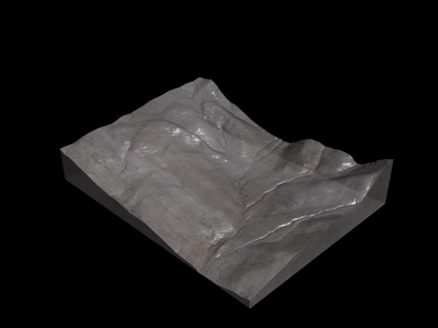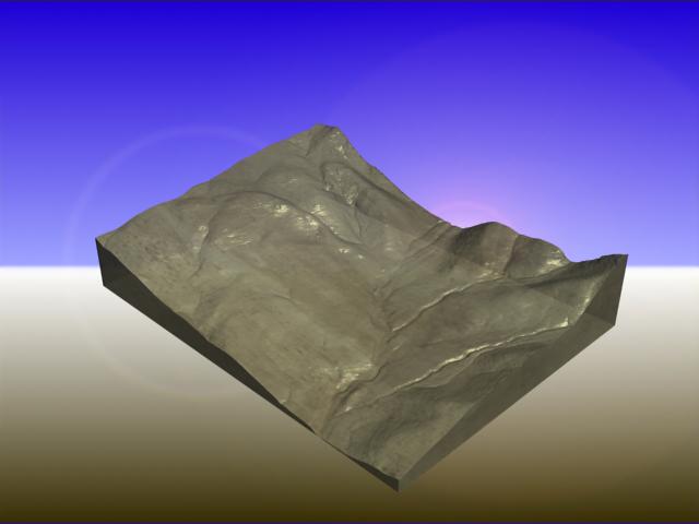 Copiopego de la ayuda del max: Terrain > form group: Graded solid--creates a graded surface with skirts around the sides and a bottom surface. This represents a solid that is visible from every direction. (crea una superficie degradada con ¿Faldones? Y una superficie inferior. Esto representa un solido que es visible desde cualquier dirección. Por si tu inglés es aún peor que el mío).