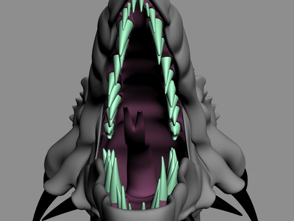 Emo: recortaré un poco la mandíbula inferior de hecho, me di cuenta de esto cuando empecé a colocar los colmillos, a ver si puedo esta noche y subo una atualización. Saludos.
