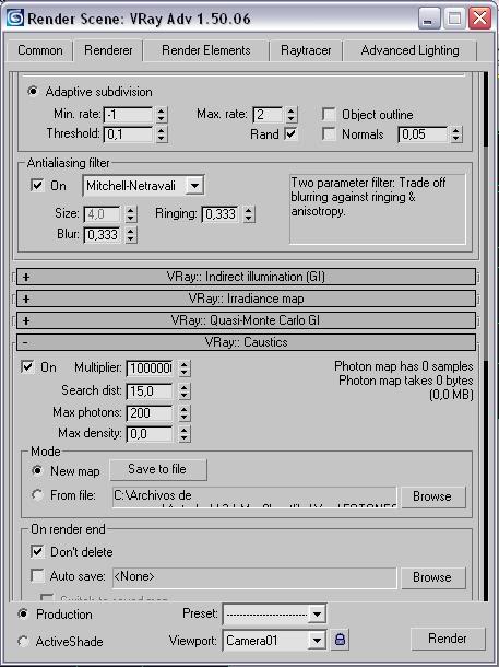 Con Mental Ray los cautics eran más fáciles de conseguir, pero tardaban más y el resultado obviamente era inferior. Ahí se las dejo. Saludos.
