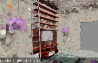 Hola, soy nuevo en el foro y he estado creando esta escena, uno de los problemas aparte de la luz es el tiempo de renderizado no sé porque hace eso, mi máquina: tengo una nvidiagforce de 256 Mb 7800GTXko y 2256mb de memoria y un procesador celerond, aparte de eso cuando imprimo me sale color verde.