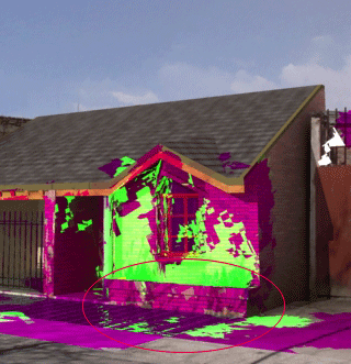 A mí también me está pasando con este archivo, cuando le aplico el mismo material del muro al cantero (elipse en rojo), me aparecen estas manchas. La solución que encontré por el momento es asignarle otro material al cantero, renderizar y guardar el mapa de irradiancia y volver a renderizar desde el archivo con los materiales que necesito.