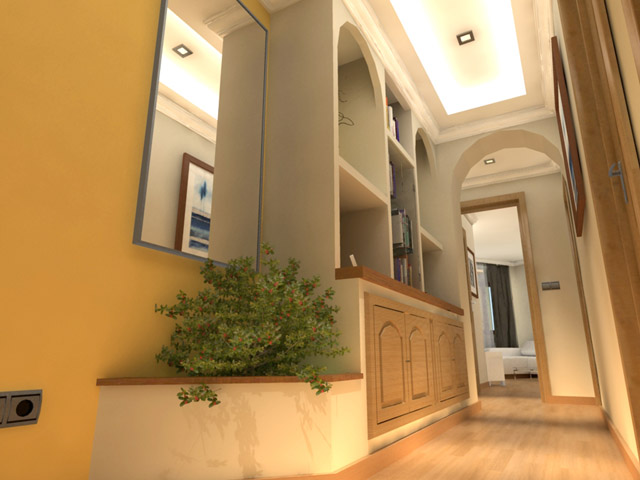 Buenos días a todos. He preparado esta imagen para unos clientes, pero, tras obtener el render la iluminacíón no me convence del todo. En las molduras que hay en el techo se obtienen unos efectos raros, que supongo que, se podrán mejorar modificando los parámetros de Vray. A parte de eso, las luces que proyectan los focos no son nada realistas ya que he utilizado los clásicos focos de 3ds Max.