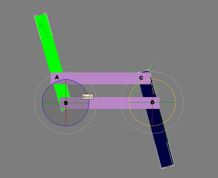 Estoy empezando a experimentar con 3ds Max para hacer pruebas de mecanismos. Sencillos antes de realizar un prototipo en la realidad. No sé si lo que quiero hacer se puede, así que, os pido ayuda. Para empezar, comencé con algo sencillo, pero es que, con cuatro cajas y cuatro pildoras se puede liar una muy gorda. La idea es pasar de la posición una a la dos y a la tres de forma mecánica, es decir, moviendo la palanca que sobresale por arriba, automáticamente se mueve la que sobresale la de abajo. El problema que me encuentro es que las cuatro cajas, necesitan dos puntos de anclaje cada una, cosa que no tengo ni @~#@ de cómo se hace en 3dsmax, alguien podría ayudarme?