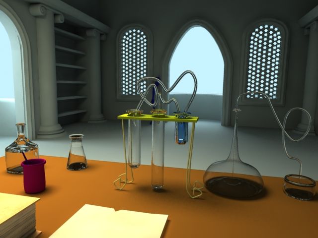 Hola, he empezado esta escena y estoy un poco atascado con el material de cristal. Resulta que no sé por qué el fondo de las probetas y demás objetos me aparecen muy oscuros, utilizo un material Vraymat y renderizo con Vray, tiene iluminación global, así que no sé, a ver si me podéis echar un cable. Un saludo.