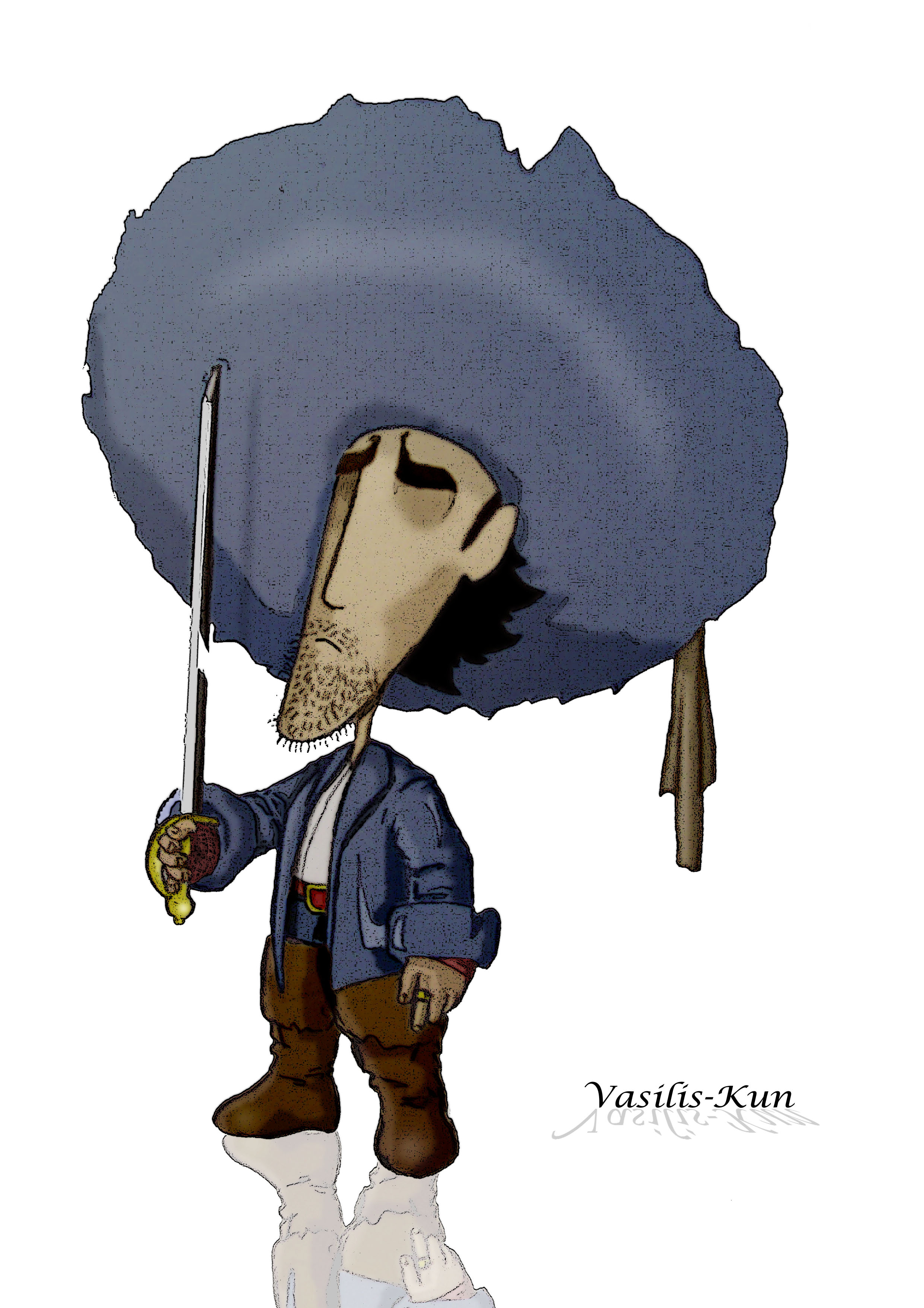 Aquí dejo mi primer dibujo pintado con este programa. Claramente ya había pintado otros, pero me he mirado tutoriales que había por aquí (sobre todo uno publicado recientemente cuyo nombre ahora no recuerdo) y me he puesto manos a la obra. No sin antes tener una prueba del maestro Climb, al cual le pedí una caricatura de mi mismo vestido como pirata.