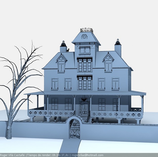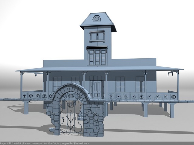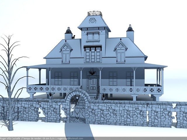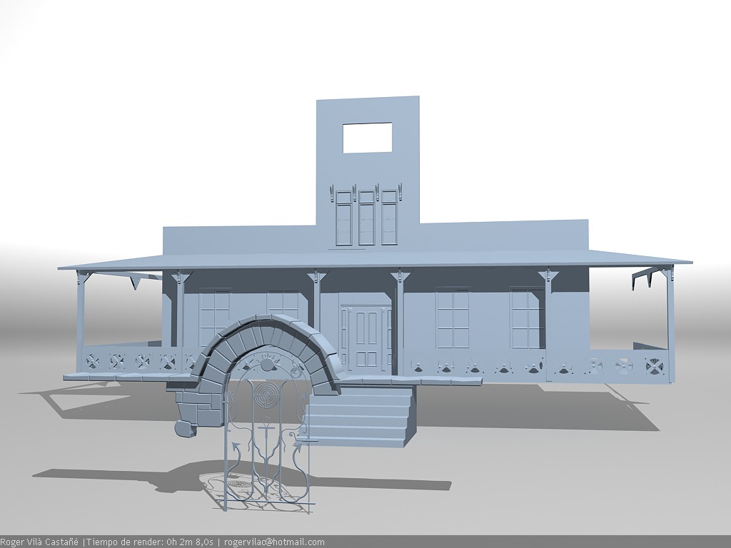 bala perdida sí, estoy usando una casa de referencia que encontré aunque modifico algunas cosas como es la entrada de la casa y quien sabe, un poco sobre la marcha. El modelado esta íntegramente hecho en 3dsmax.