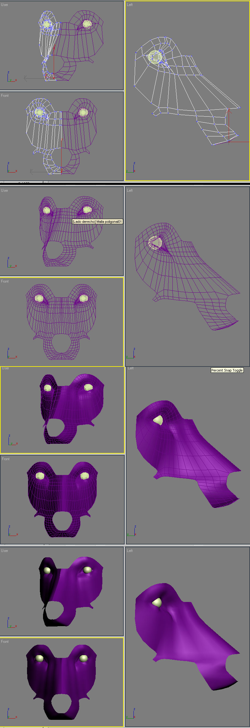 Lo que sí te aconsejo, es que no termines nunca un modelo mientras tenga esos fallos de pentágonos y triángulos. Rompete un poco los sesos, aunque tengas ganas de terminar, y dedícale tiempo a corregirlo.