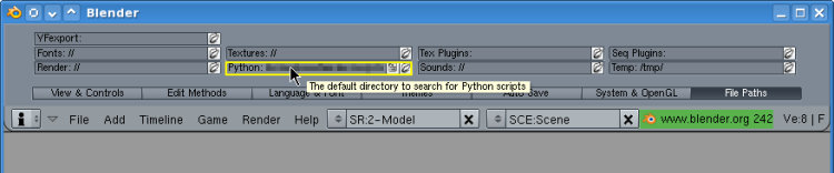 Posdata: instale la versión 2.4 de Python, pero en la ventana del ms-dos (la que aparece al iniciar Blender) me sale que Python aún no está instalado.