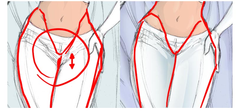 No sé, creo que queda claro respecto al de antes rr. La línea del pubis bien es cierto que antes estaba más baja que lo que debería, pero las arrugas, creo que las arrugas de un pantalón por muy ceñido que sea no se ajusta a las líneas de aduptores e inglés, es mi parecer. Coloco las diferencias de los pubis.