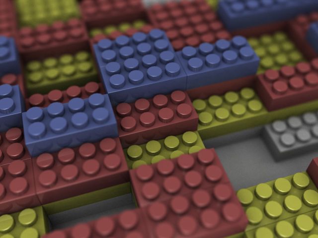 Creo que la imagen podría funcionar mejor si en el centro, es decir, donde es nítida (por ejemplo, en cualquier punto de los dos bloques azules que están juntos), pusieras algún elemento que no estuviera en el resto, como un bloque de otro color, una flor lego. Saludos.