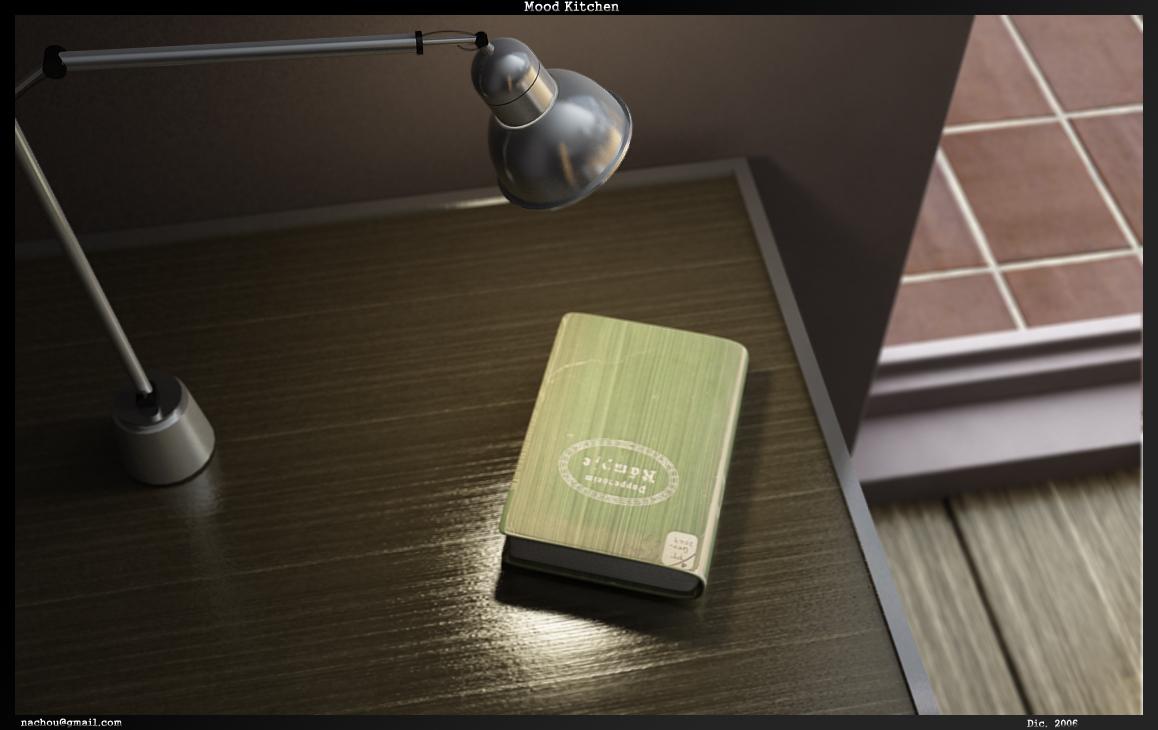 Los tiempos realmente no los sé, al no tener fechas límite dejé los renders a tirar por las noches sin escatimar parámetros. El ordenador, un portátil m740, 1 Gb de RAM. Como promedio los renders entre 2 y 3hs.