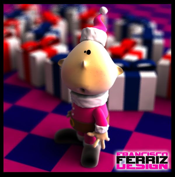 Por poner una pega, le quitaría falloff a los zapatos, es decir, el límite entre el borde blanco y el material negro, además de estar demasiado difuminado, está demasiado para adentro, para mí gusto. Y la boca parece un ombligo, pero me mola. Saludos navideños.