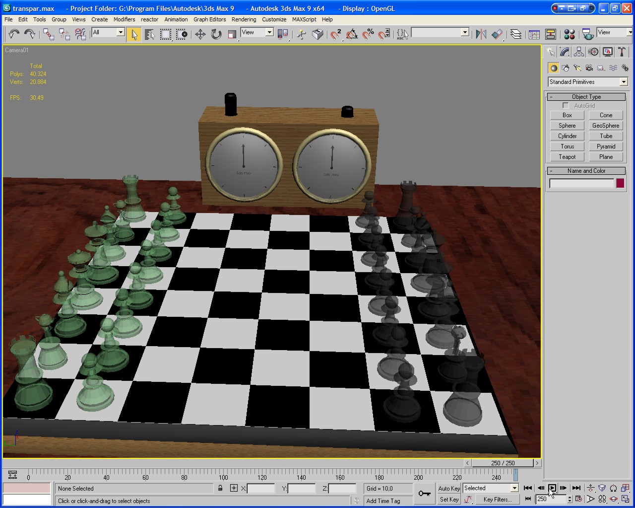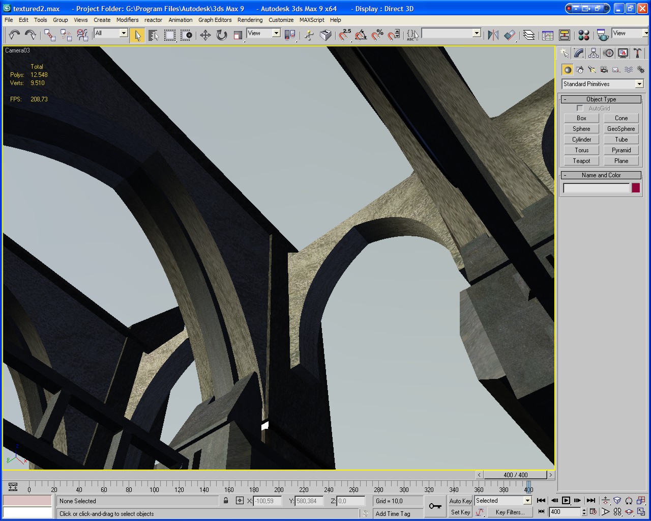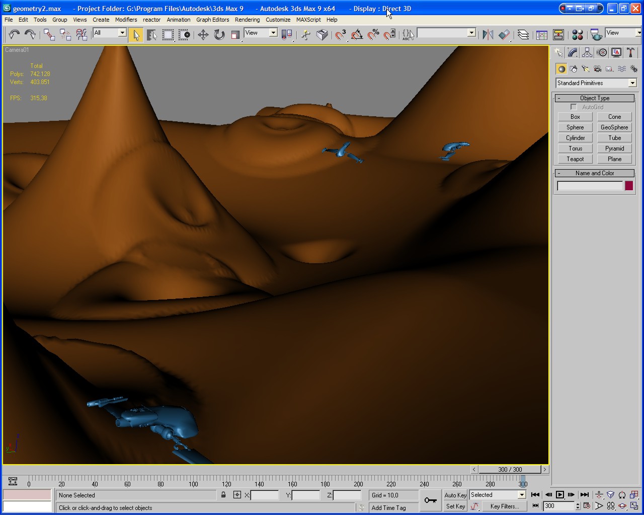 Estos benchmarks o están anticuados o mi máquina se ha vuelto loca. He probado otros archivos como el geometry2.max y le he dado directamente a play nada más abrir y me saca los 280+ frames por segundo el Maxtreme. DirectX en cambio me llega a alcanzar los 350+ fps. Luego me pongo a mover la cámara por el escenario y se me ponen los frames por segundo oscilando 800+ fps, de nuevo DirectX ligeramente superior.
