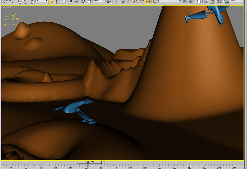 No sé si será un bug del 3ds Max, pero en las estadísticas, moviendo la escena con cierta lentitud en wire, una vez me salen 3 frames por segundo y otras 280fps cuando no va suave el moverme por los visores.