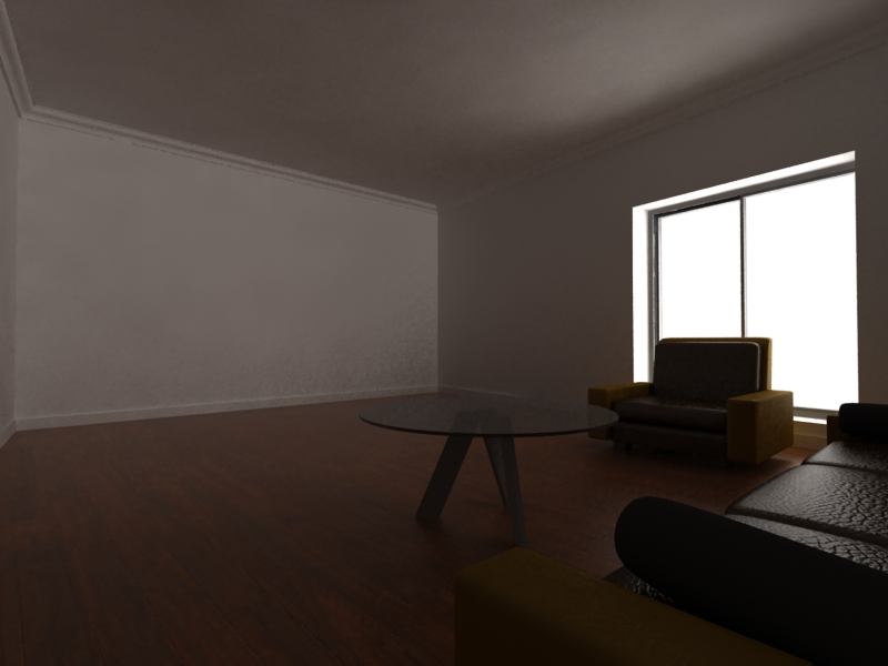 Bueno vamos al tema, se trata de mi primer trabajo que me llevó en serio una simple habitación que forma parte de un estudio para la universidad (arquitectura). De momento solo estoy haciendo algunas pruebas con la iluminación y algunos materiales, he puesto un par de imágenes y como comprobareis aún está muy verde el asunto. El caso es que no sé porque narices no se me proyectan las sombras de una Direct Light que tengo fuera que tiene activada las Vray shadows (uso max 6 y Vray 1.45). Tampoco soy capaz de deshacerme de esa típica mugre que aparece en los planos de las paredes, por ejemplo, he intentado aumentar las subdivisiones y el max rate del Irradiance Map, pero no hay manera. Si alguien es tan amable de aconsejarme estaría muy agradecido del mismo modo también estaría genial algún que otro consejo teniendo en cuenta claro esta que aún tengo la intención de meterle más cosas.