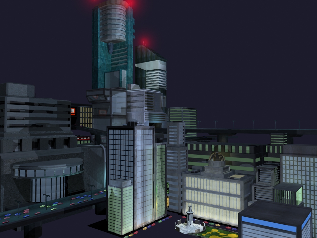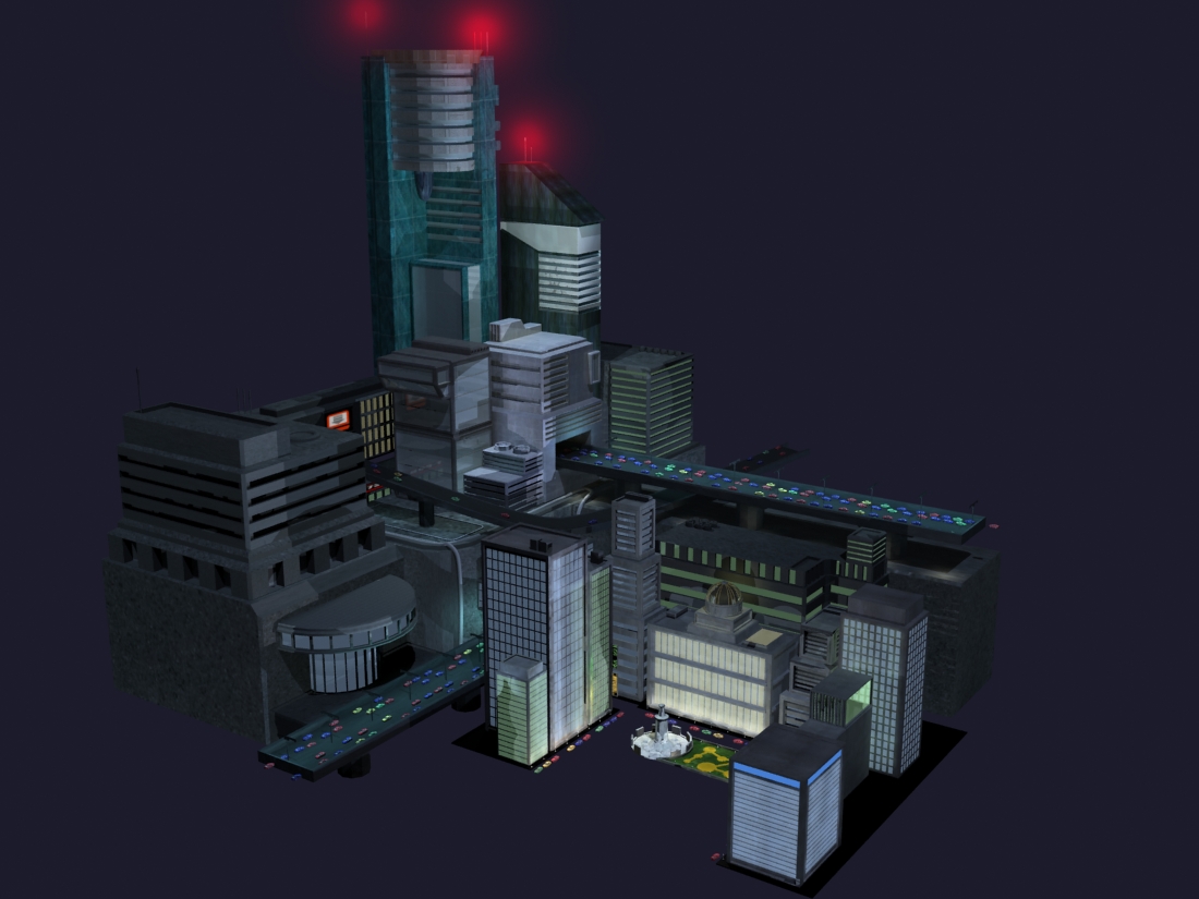 Hola. Aquí dejo unas imágenes de un pedazo de ciudad. Por favor no sean muy duros con las texturas y el modelado, y las luces, en fin, con todo básicamente.