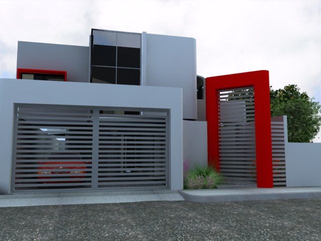 Por principio quiero pensar que el elemento rojo de enfrente es metal pintado, y casi parece fosforecente, en la textura del pavimento se nota el tiling demasiado, intenta que sea menos evidente, también el enrejado del estacionamiento se ve muy plano, esto te lo digo en base a mis propios errores y son los mismos, pero ya los tengo detectados y los corregiré, ojalá te ayude en algo, y tu me ayudes igual.