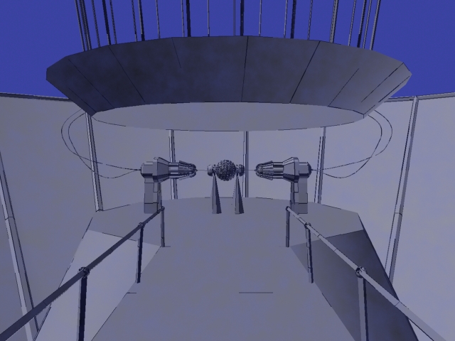 Como concepto no está mal, pero el desarrollo deja que desear. Me explico, se ve todo demasiado básico, cilindros y cubos, prescinde de texturas y modela Gadget, cables, etc. Y mejora la textura de las barandillas, que, por otra parte yo las haría o redondas o tipo pasamanos.ánimo.