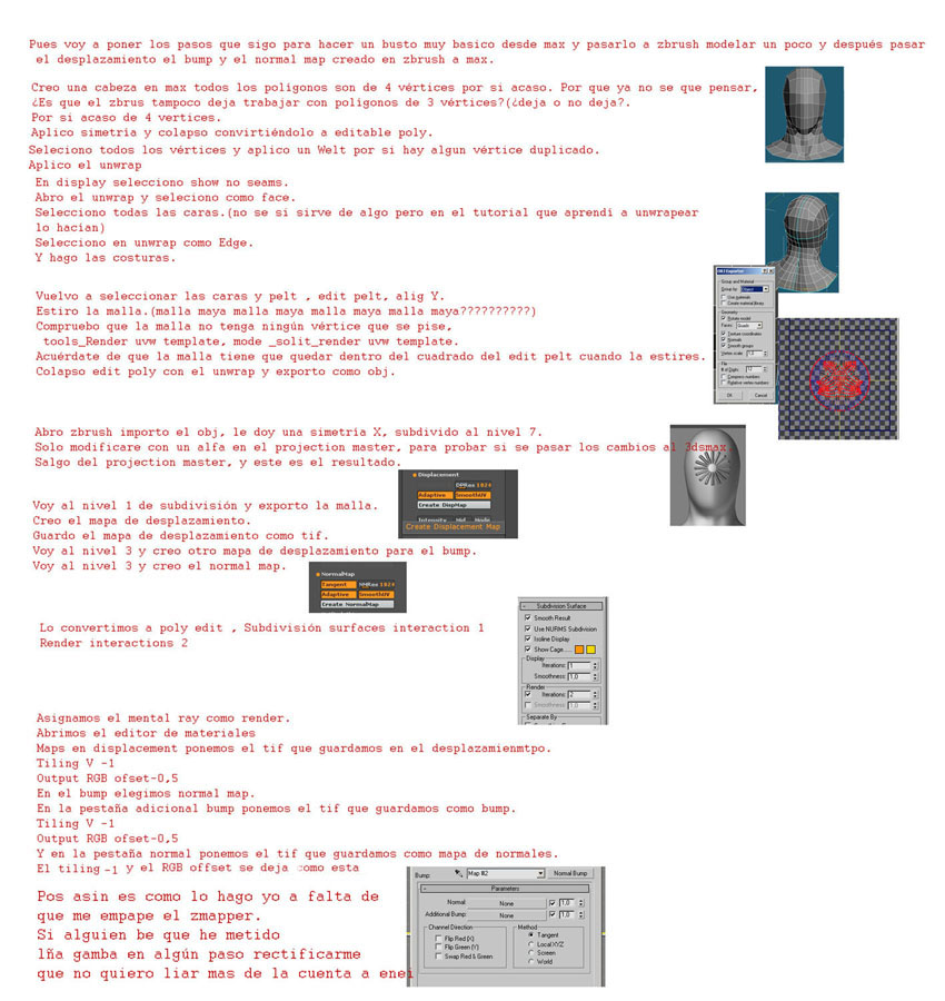 Una vez tengo las UVS correctamente en 3dsmax, exporto a (*.obj), e importo en ZBrush, le aplico la textura, pero no va al sitio que le corresponde.