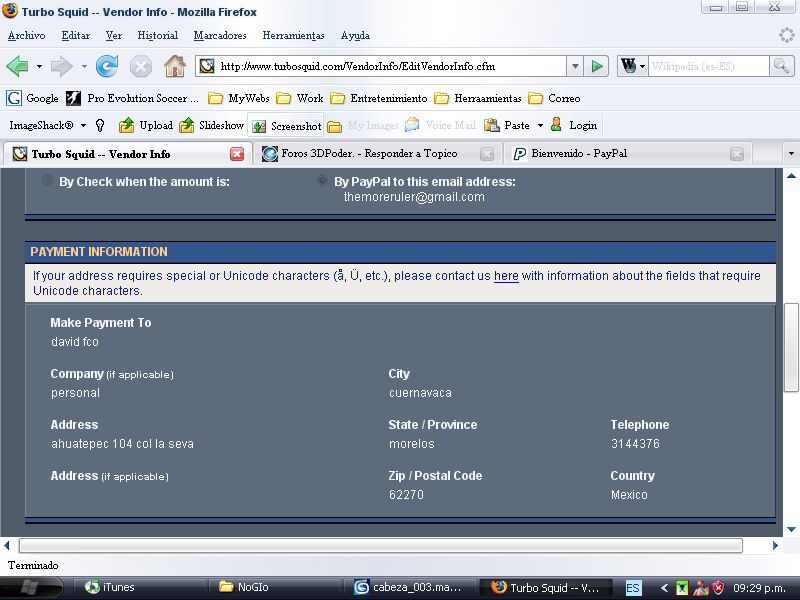 Hola, tengo algo de dinero en TurboSquid y quería ver si alguien me ayuda a cobrarlo, no se mucho la verdad de esto, por cierto, no soy residente de usa.