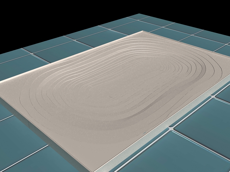 El proyecto esta inspirado (por decirlo de algún modo) en la topografía (si alguien tiene datos relacionados con la misma que me pegue un toque pues ando algo flojo) y es el resultado de las curvas de nivel aplicado en un descenso centrado hacia el desagüe.