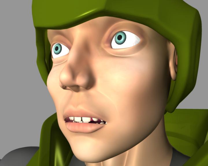 Tengo el soldado modelado y con su esqueleto y sus blendshapes, la chica igual, pero con pelo con modulo Hair (usamos Maya 8.5).