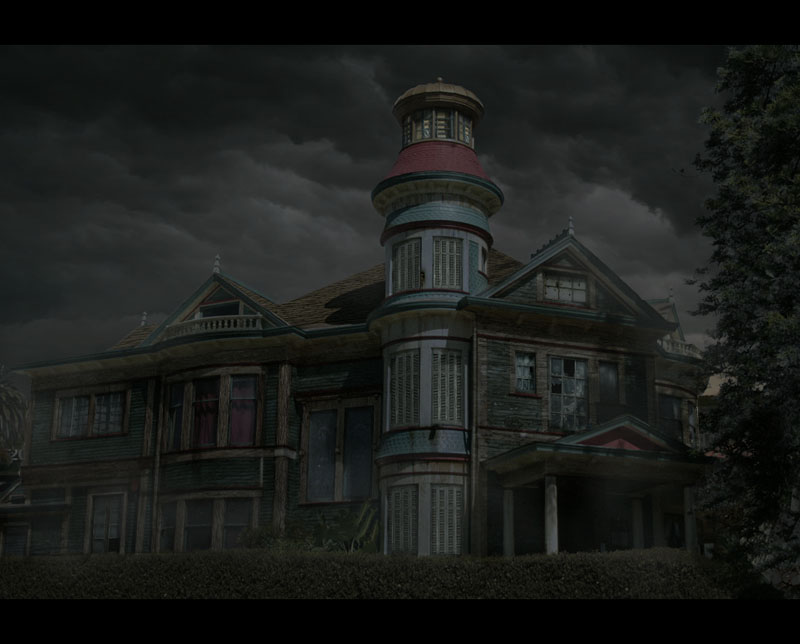 yo corregiría el muro de la casa y lo enderezaría. Esta inclinado, supongo que, por un efecto de gran angular de la fotografía.