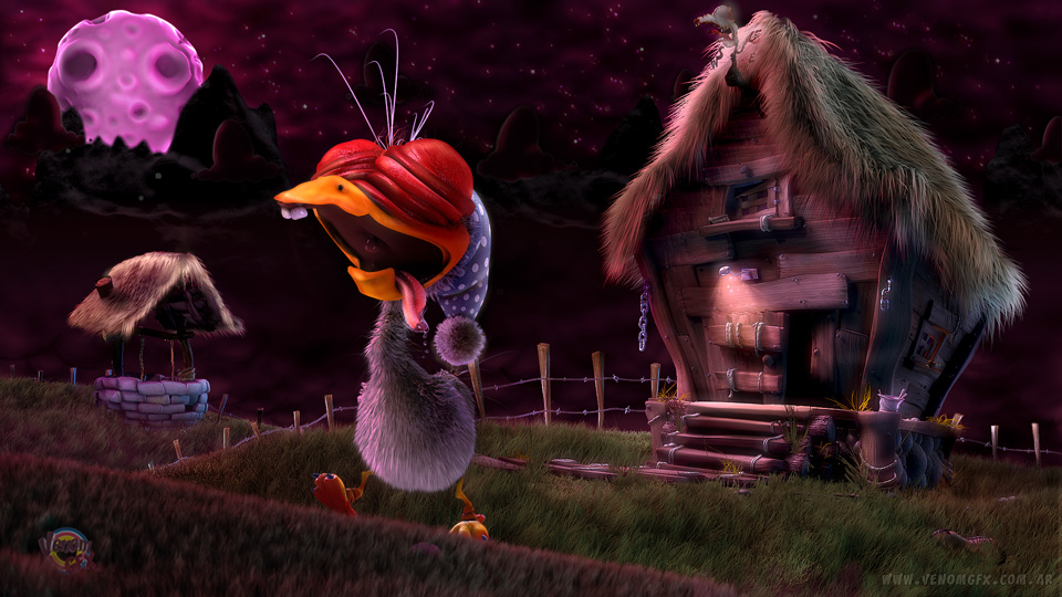 Muy bueno, me encanta el look que le has dado y como te ha quedado todo en conjunto. Lo único que me molesta es la ¿luna? Y la nube negra que toca el pico del pollo.