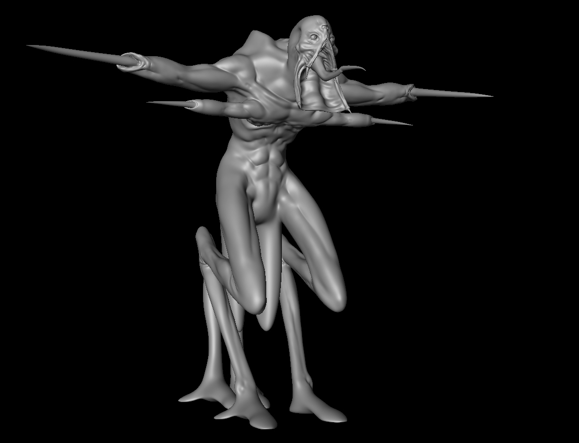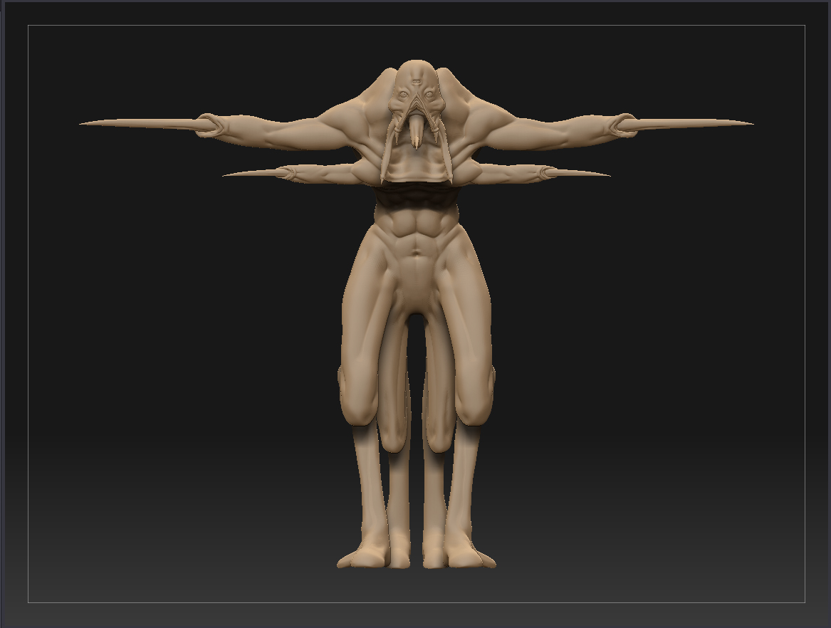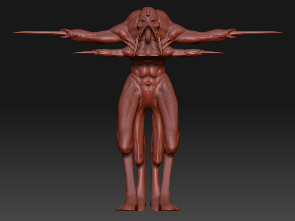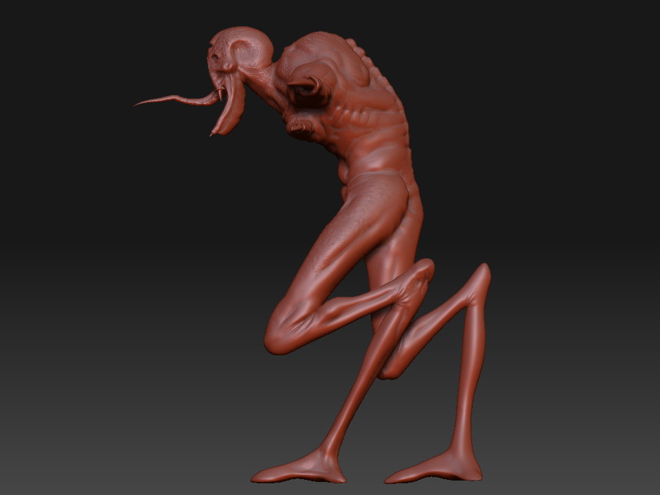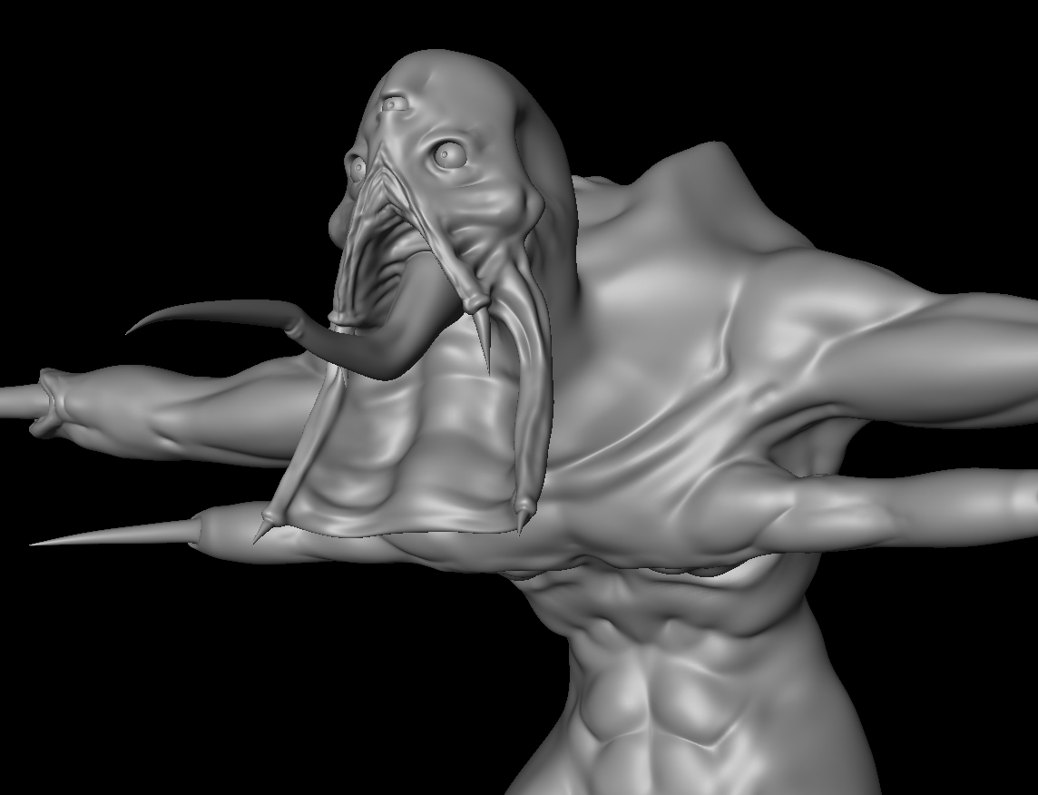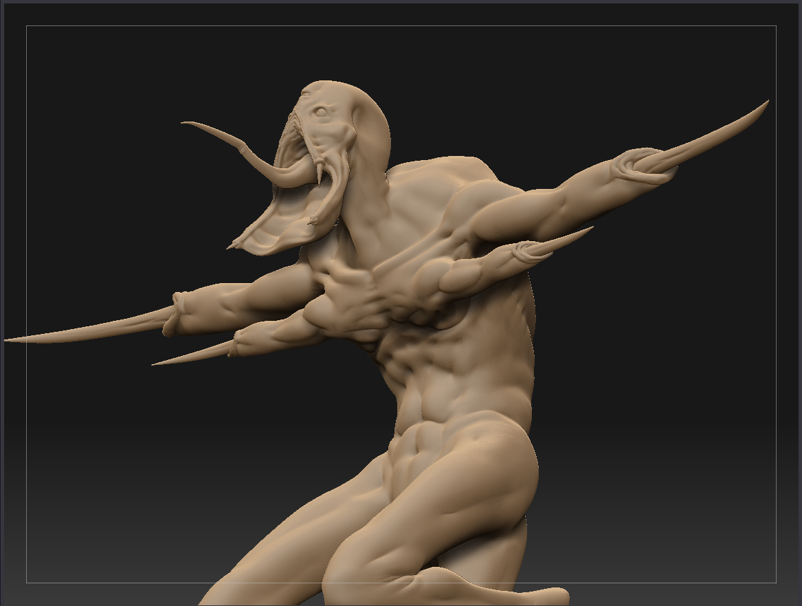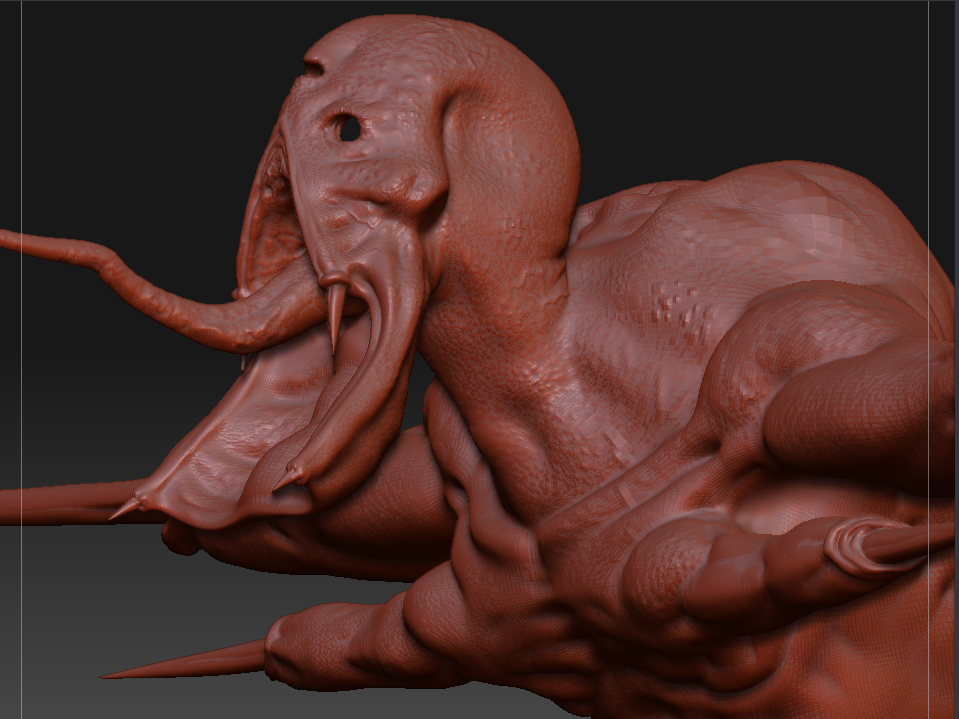 Hola a todos, vuelvo aquí para mostrar mi escena la cual está en progreso, es un bicho que diseñó un dibujante amigo mío al cual me puse a modelar en 3d, esta en progreso, espero les guste, el modelo de base está hecho en 3ds Max, luego los detalles los estoy agregando en ZBrush.