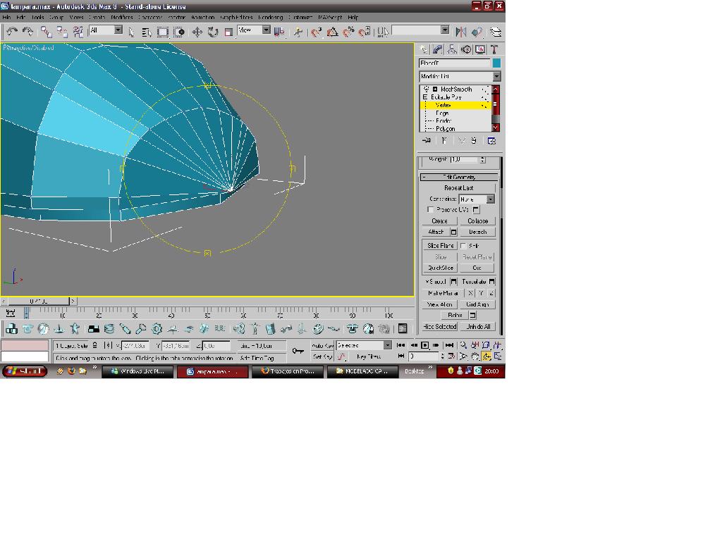 La verdad es que, a esta altura ya debería saber solucionar esto, pero aun no puedo. Estoy modelando una lámpara de escritorio, bueno, voy en la base recién, la estoy modelando extruyendo planos y Simetry, pero al llegar a la parte de la punta, tengo que juntar de algún modo todos los vértices, así que, aplique collapse y se juntaron, pero quedaron solo polígonos de tres lados y la Maya se ve horrible al suavizarla.