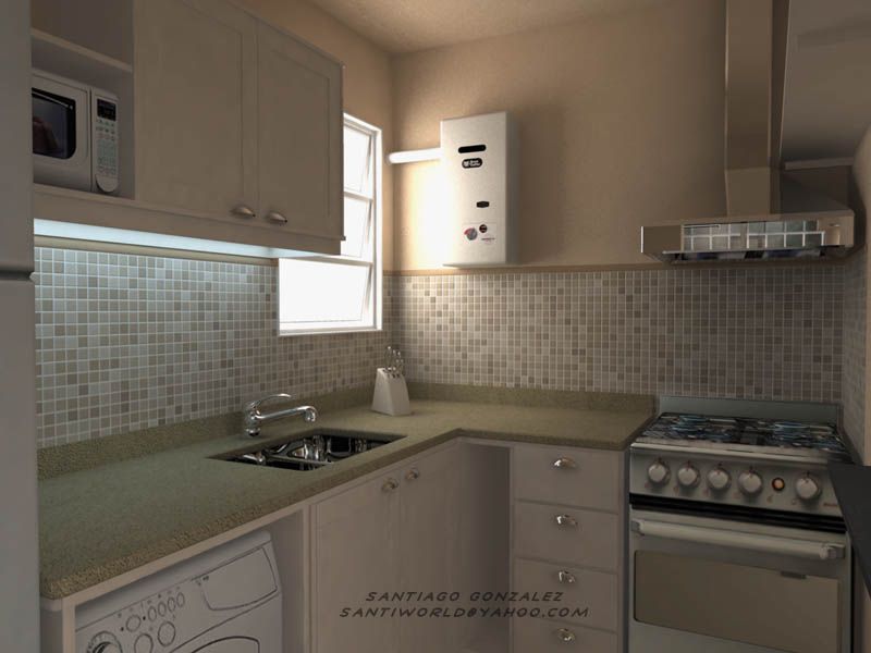 Como algunos han dicho, creo que la imagen ganaría enteros si la lavadora, horno y microondas estuvieran modelados, porque se nota un poco que son pegatinas. En general, está muy bien. Enhorabuena.