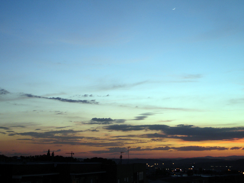 Primera hora de la noche, mirando hacia el oeste.Por cierto, no soy capaz de reconocer ninguna constelación con esas estrellas. Qué cielo más raro.
