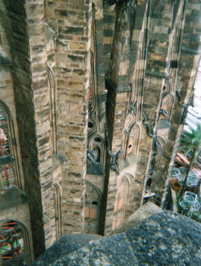 Encontré unas cuantas fotografías (tenía más, pero no sé dónde están), una es de las columnas interiores, y las otras 3 son vistas desde las escaleras, no sé que escaleras, ni sé si son a las que os referís, yo solo recuerdo que había partes muy estrechas y que los peldaños no se acababan los muy cab.