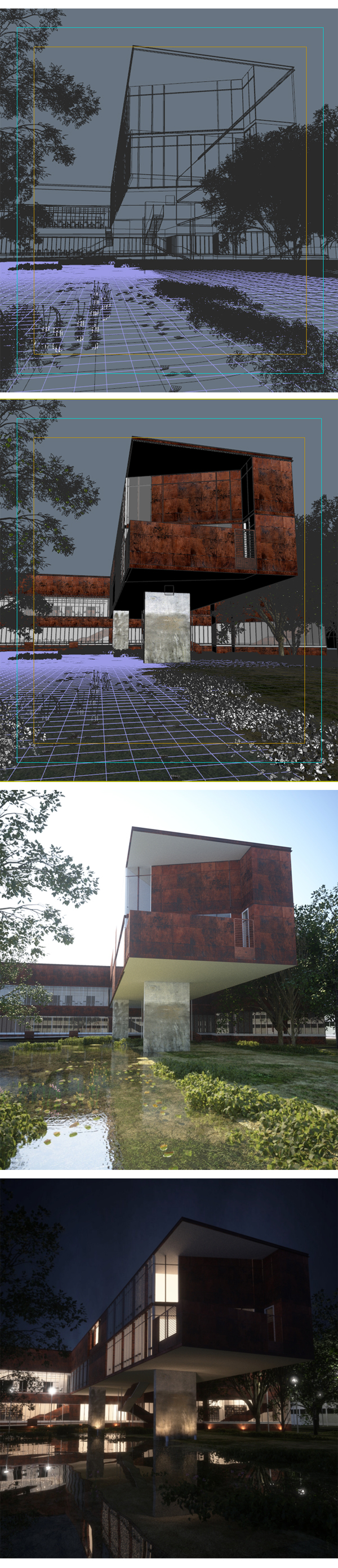 Pero de verdad, felicidades, es muy bonito en general, tanto de día como de noche, pero detalle del agua y esas plantas están de coña, es el tipo de detalle que te puede hacer dudar ante un render como ese, de si será fotografía o no. Saludos.
