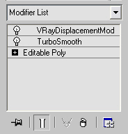 Aplicamos el modificador Vray Displacement Mod mod por encima de TurboSmooth.