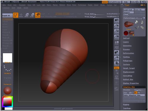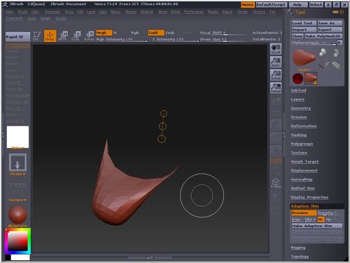 Hola recién empiezo con ZBrush y tengo un prblema, yo trabajaba con le versión 3.0 y al pasarme a la 3.1 la Zspheres me sale a la mitad cunado la convierteo a makepolymesh la esfera me sale a la mitad alguien sabe por que. Saludos.