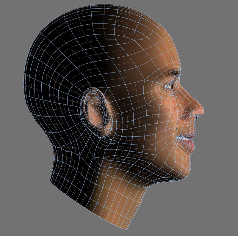 Dejo un nuevo wire del negrito. No tengo mucho tiempo, así que, he empezado por reducir los polígonos de la nariz, como me sugerian y sacar un poco las cejas. Saludos a todos.