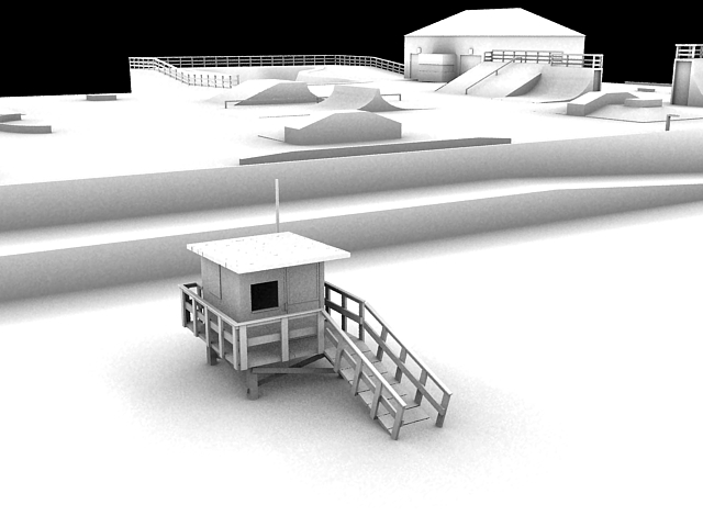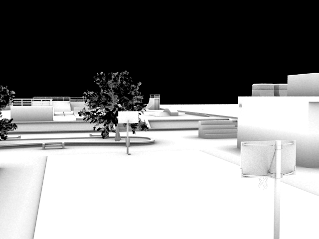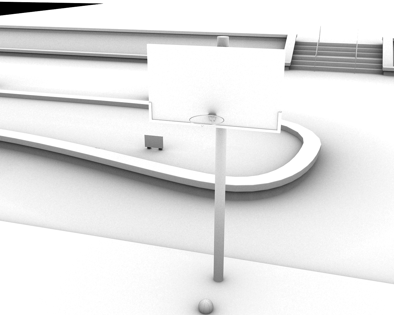 Le falta mucho trabajo aunque aún tengo que modelar canastas y tal, y quiero hacer la playa al lado con los barracones, palmeras y mirar de hacer un skate parque por detrás. Si, yo tampoco se porque hacer tanta cosa si igualmente no se verá tal como quiero meter la cámara cerca de la pelota y con Dof, pero así tendré algo de material que siempre viene bien para el futuro por si quieres renderizar algo con un poco de escenario de fondo y no tener que meter un plano debajo y un HDRI y ya está.