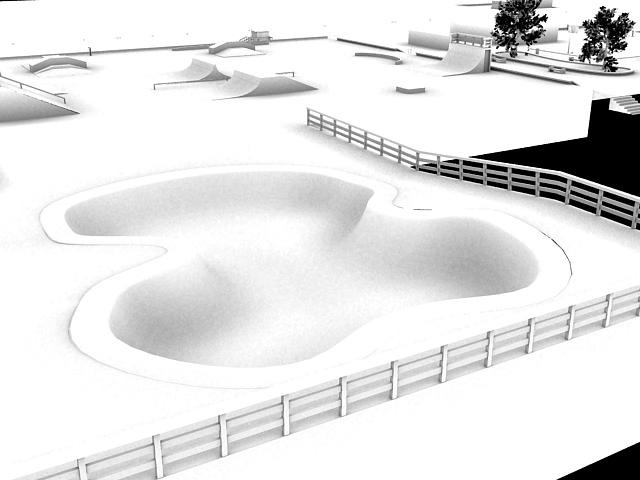 La parte de la piscina del fondo tengo que elevar el plano del lado y hacer el agujero y tal, pero vamos, que lo otro más o menos ya empieza a estar como debe estar, que ahora que he tenido un par de horas me he modelado todo lo del skate park, aún faltaría llenarlo un poco, pero es que, ya no tengo ideas de que hacer falta hacerle un tubo larguito y ya no sé, en fin, ya veré.