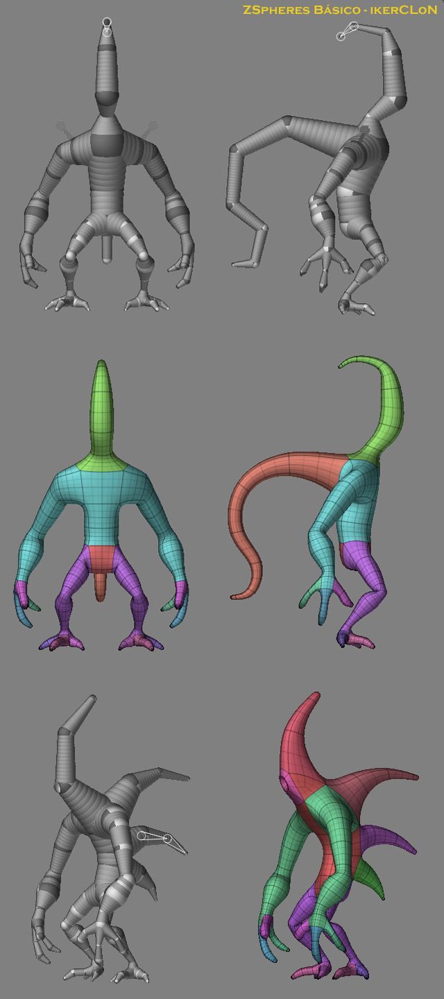 Ahí va mi contribución después de pasarme un ratio haciendo el chorra con ZBrush. Hay que andarse con ojo con las malditas esferas, ya que a veces les da por hacer pirulas (menos mal que viene todo bien explicado en la ayuda).