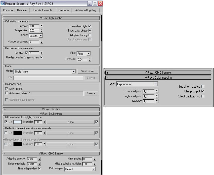 Los parámetros cambian según el ambiente que estés renderizando, pero te puede servir este enlace, creado por Leandro sp. Estos parámetros para render final.