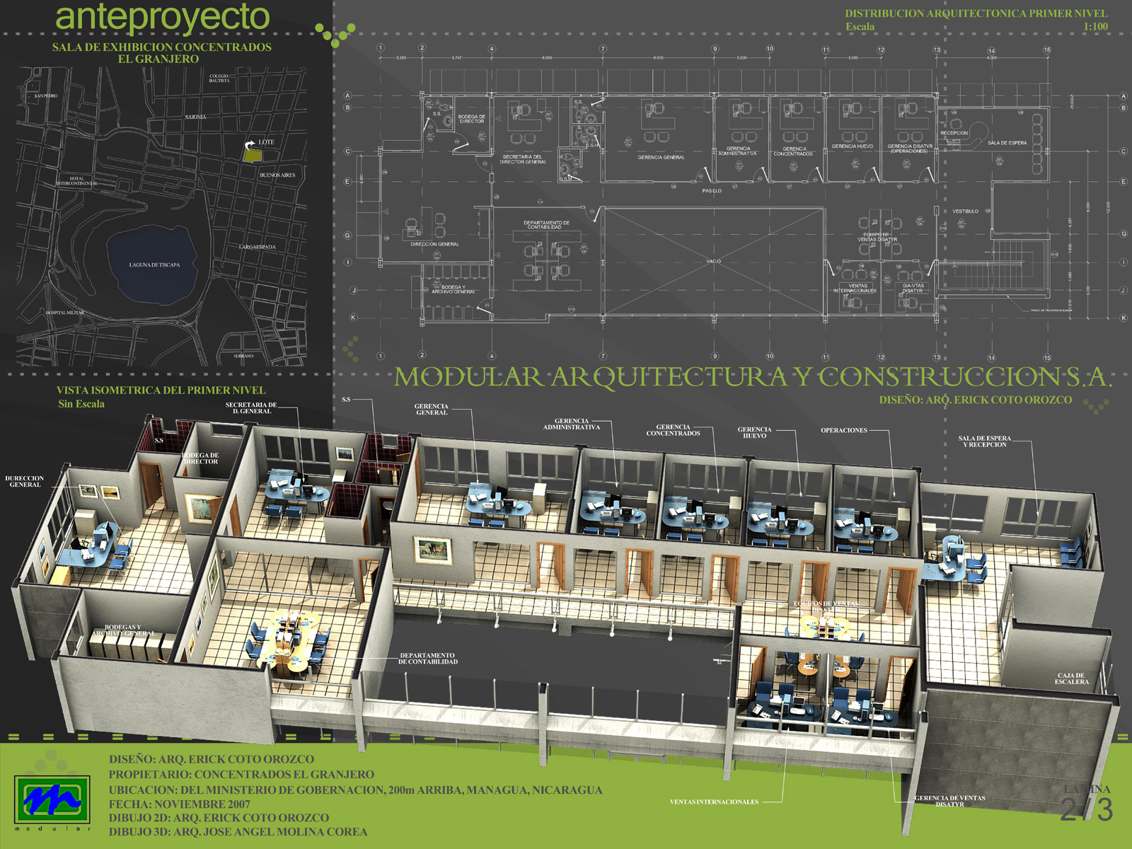 Este es el resultado de la planta en isométrico seccionada finalizada, aderida a una composición para el cartel de epresentación, decidí ponerlo en este tópico por que corresponde al mismo edificio, a ver qué opinan amigos. Gracias de antemano.