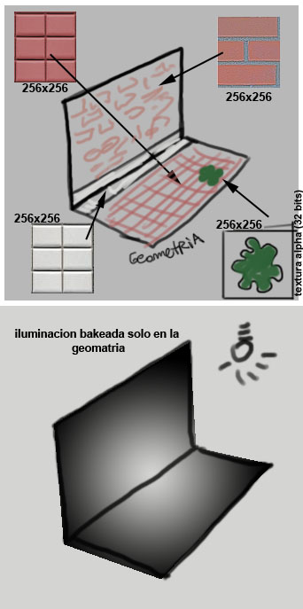 Ante todo perdona que te este mareando tanto con el tema. Te explico. La escena que tengo que preparar es para un videojuego. Entonces creo que la manera de texturizar es diferente que si estuviese haciendo un infografía ¿no? (o al menos eso es lo que creo) y ahí es donde entra el render to texture y el Unwrap. O quizás ahí es donde estoy liado. Ahora mismo creo que las texturas que tengo que presentar es parecido a esto.