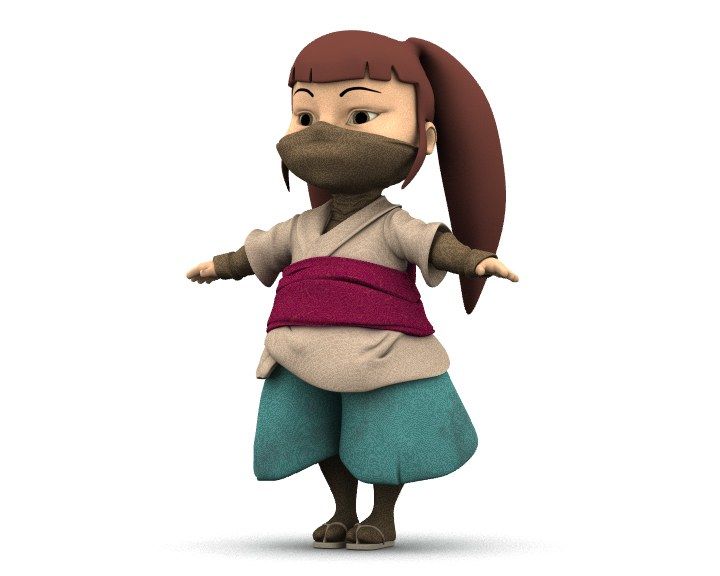 Hola a todos de nuevo. Tras este breve período de tiempo ausente, he regresado de entre los muertos. Desde que curro en esto del 3d (por fin), no tengo mucho tiempo para nada, así que, mis trabajos escasean, pero aquí os traigo a mi niña ninja. Está hecha en LightWave y aparte de que le falta unos retoques de malla, como veréis las texturas me las ha sacado el render como le ha salido del mismo, pero bueno eso ya lo arreglaré en las texturas finales (digo yo).