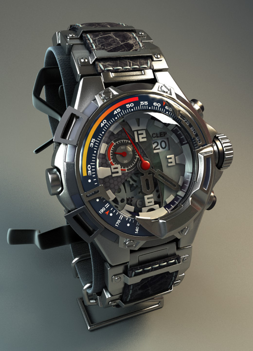 El render fue hecho con Vray 1.5 rc5 y use sus materiales. Metal, transparente, tejido y plástico fueron las clases de materiales que use.