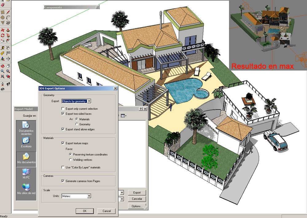 El problema que tenemos es que recientemente han introducido ese programa en el despacho donde trabajo, y si, para algunas cosas está muy bien, pero cuando intentamos pasarlo al max, sale todo muy mal.caras giradas.geometría rota.