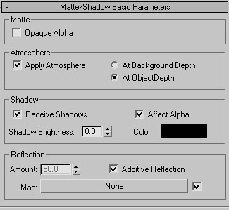 A mi por defecto, cuando aplico el material matte/shadow viene señalada la opción at background depth y no at object depth como tienes tú en la captura, y apply Atmosphere desactivado.