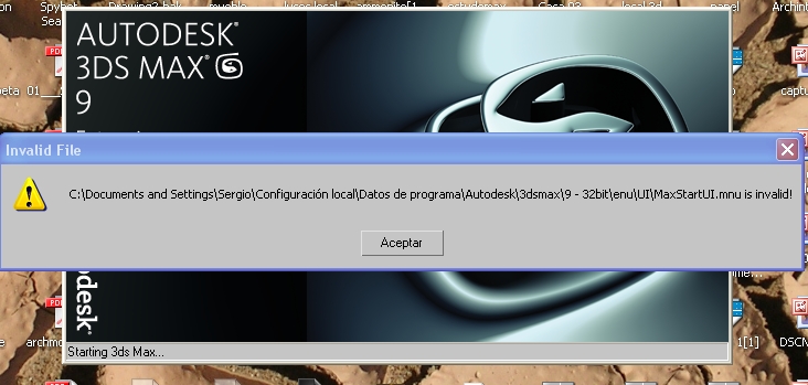 Hola a todos, tengo un problema al iniciar el programa 3dsMax 9 me sale este ventana que adjunto y la verdad no sé por qué ocurre eso el programa anda bien y de un día para el otro me salió esta ventana y no me deja usar el programa.