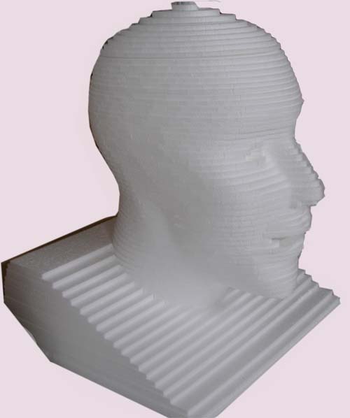 El modelo o figura real (muñeco, busto, etc), resultaría realizarlo artesanalmente (a mano) con arcilla, plastilina u otros materiales. Una vez hecho esto, seria realizar una serie de fotografías desde distintos ángulos para poder tratarla posteriormente con el software imagemodeler (creo que es), para poder sacar su modelo virtual en 3d (sin texturas, solo en un color). Una vez sacado el modelo 3d virtual con este software, me gustaría realizar el seccionado de corte de toda la figura para poder posteriormente cortar esas secciones en porexpan (corcho blanco) y así construir la figura que media en realidad 50 centímetros (por ejemplo) poder sacar las secciones para una medida real de, por ejemplo, 2preguntay así poder tratarla manualmente para su posterior acabado (pintarla).