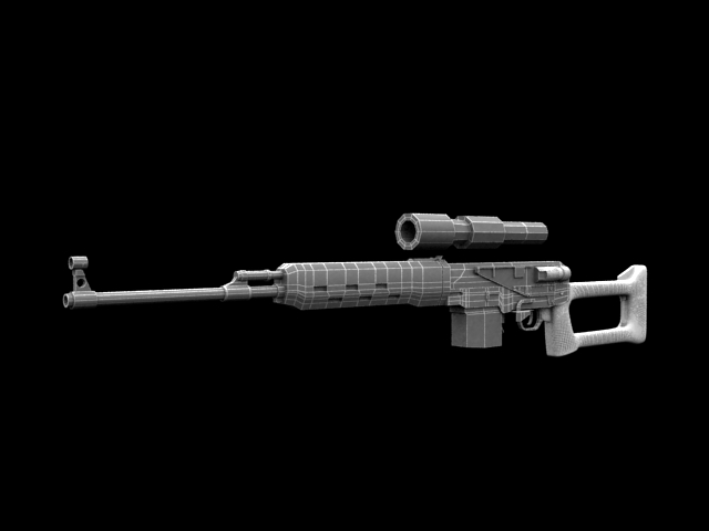 Hola gente, dejo aquí lo que estoy haciendo en casa en estos momentos, cuando me lo permiten el trabajo y los estudios. Espero que os guste, pero también que si queréis opinar o aportar algún consejo o idea, no os cortéis, serán bien recibidos. Es un Tiger dragunov, un rifle de francotirador. Estoy modelando en 3dsmax.